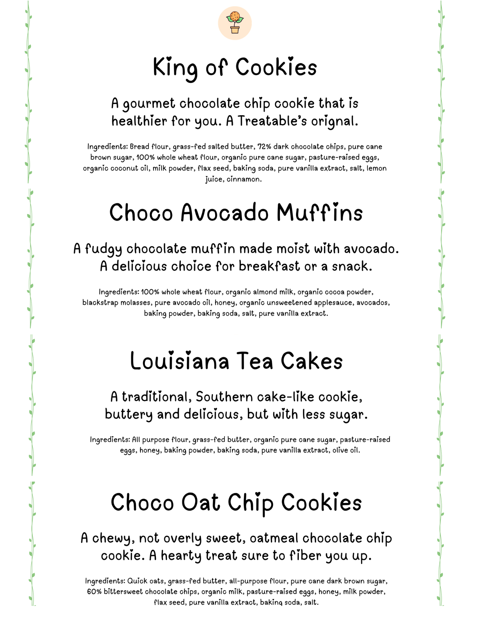 Hi, my name is Moriah, founder of Treatables. At Treatables, we believe in creating delicious goodies using fresh, healthier ingredients โ vegetables, fruits, and less sugar. Each recipe took months of research, crafted with love by a baker and future doctor who truly loves to bake.